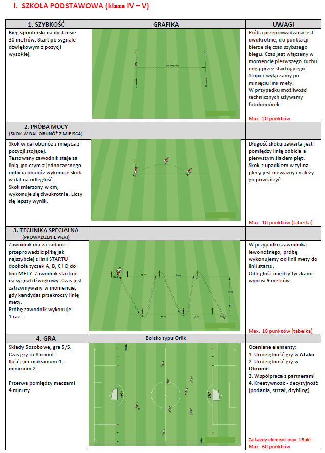 RODZAJ TESTU SPRAWNOŚCI FIZYCZNEJ DO KLASY O PROFILU PIŁKARSKIM